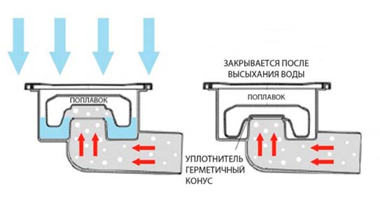 Наиболее надежным и удобным решением считается двухуровневый трап, в котором совмещены гидро- и сухой затворы. При частом использовании водяная пробка выполняет свою функцию, а если душ долго не эксплуатируется, включается механизм сухого затвора. Такой вариант обеспечивает максимальную защиту от запахов, а при необходимости сухой клапан можно снять, оставив в работе только гидрозатвор.