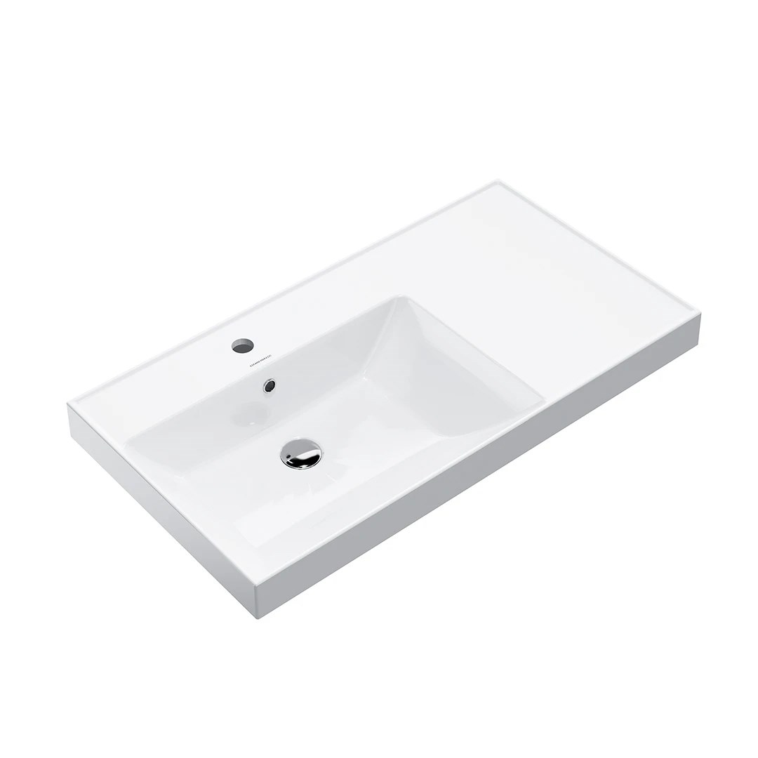 Kerama Marazzi Cubo Раковина подвесная 90,5x48,5x18h см, с переливом без д/к, цвет: белый глянцевый CU.wb.90Lh