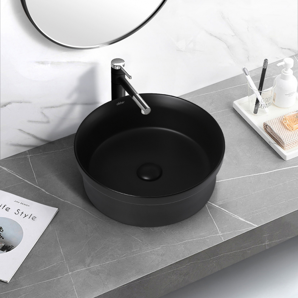 Abber Bequem Раковина накладная круглая 40x40x14h см, цвет: черный матовый AC2103MB и другие сантехнические изделия бренда характеризует надежность, высокое качество и продолжительный срок службы. Изделие в стилистике минимализм впечатляюще будет смотреться в различных цветовых решениях помещения.