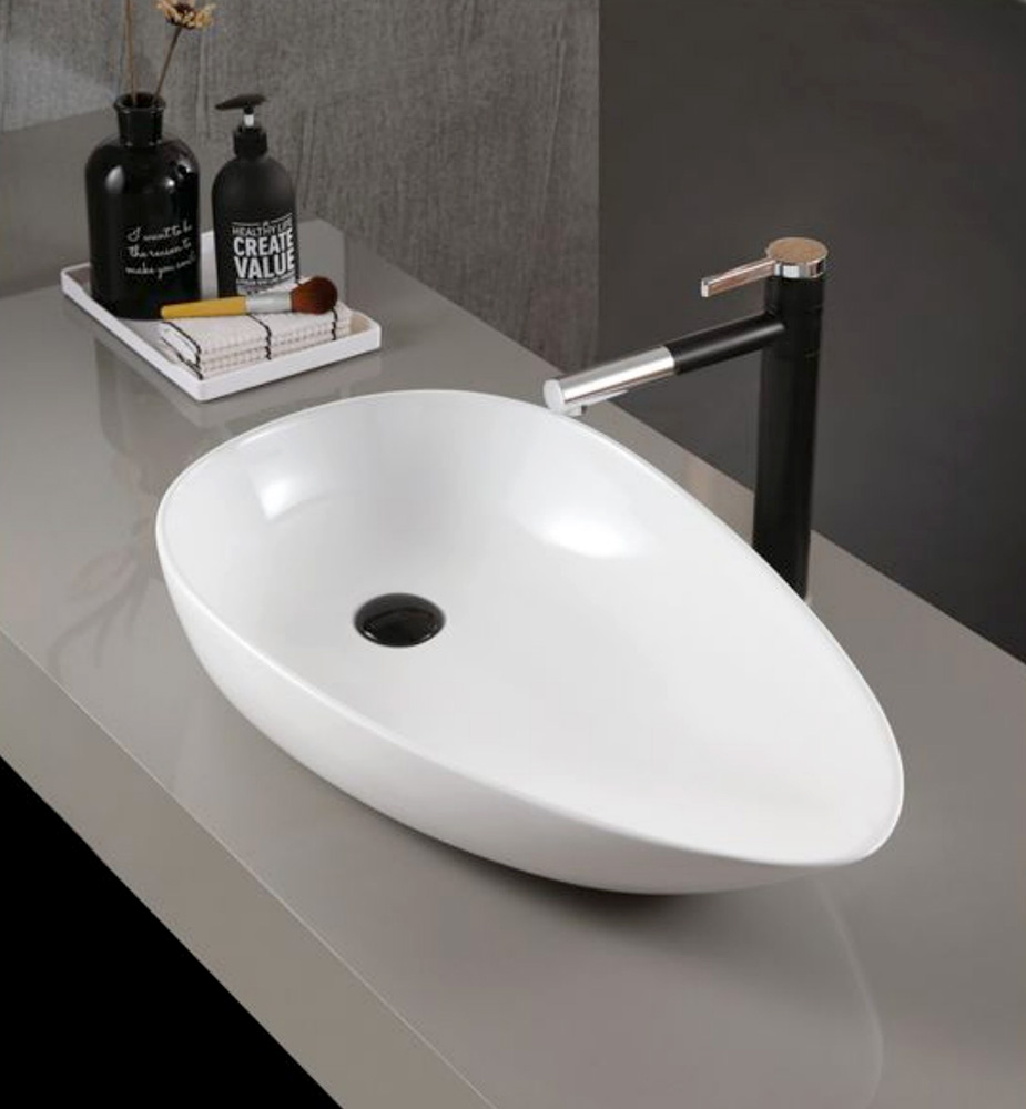 Abber Bequem Раковина накладная овальная 59x36x11h см, цвет: белый AC2117 и другие сантехнические изделия бренда характеризует надежность, высокое качество и продолжительный срок службы. Изделие в стилистике минимализм впечатляюще будет смотреться в различных цветовых решениях помещения.