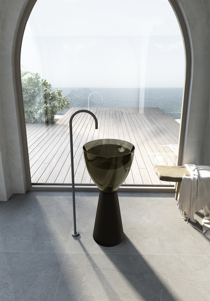 Abber Kristall Раковина отдельностоящая прозрачная круглая 45x45x90h см, цвет: черный/оливковый AT2703Black-Vesuvian и другие сантехнические изделия бренда характеризует надежность, высокое качество и продолжительный срок службы. Изделие в стилистике минимализм впечатляюще будет смотреться в различных цветовых решениях помещения.