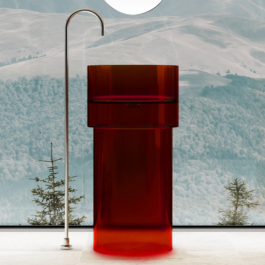 Abber Kristall Раковина отдельностоящая прозрачная круглая 45x45x90h см, цвет: красный AT2701Rubin-H и другие сантехнические изделия бренда характеризует надежность, высокое качество и продолжительный срок службы. Изделие в стилистике минимализм впечатляюще будет смотреться в различных цветовых решениях помещения.