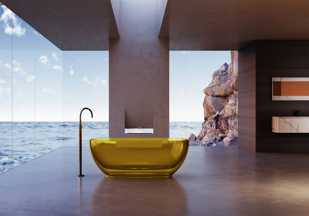 Abber Kristall Ванна прозрачная отдельностоящая 170x75x55h см, цвет: желтый AT9703Amber и другие сантехнические изделия бренда характеризует надежность, высокое качество и продолжительный срок службы. Изделие в стилистике арт-деко впечатляюще будет смотреться в различных цветовых решениях помещения.