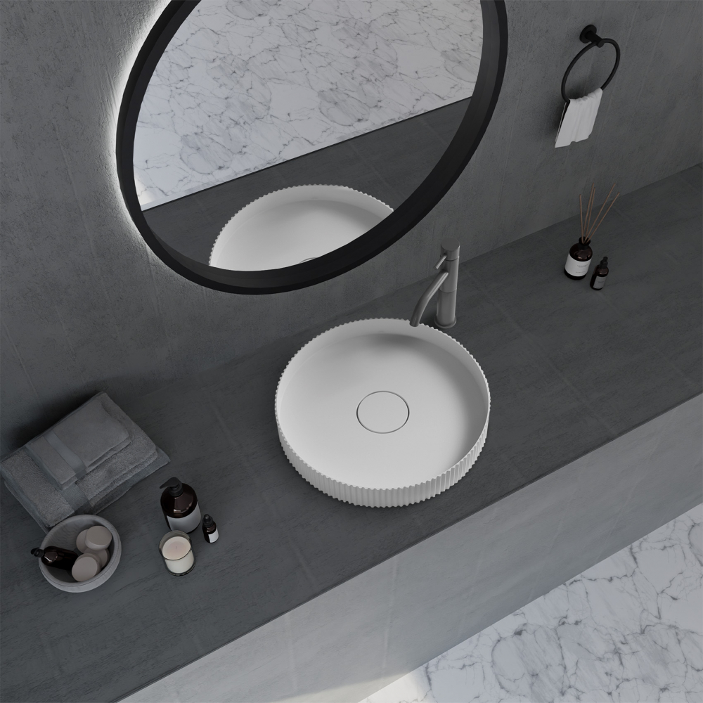 Закажите Abber Stein Раковина накладная круглая 40x40x6h см, цвет: белый матовый AS2604 от производителя Abber, коллекция Stein в салоне европейской сантехники Дизайн Сантехники с быстрой доставкой по Москве. Представлены подробные характеристики и фотографии, которые позволят сделать правильный выбор и заказать товар.