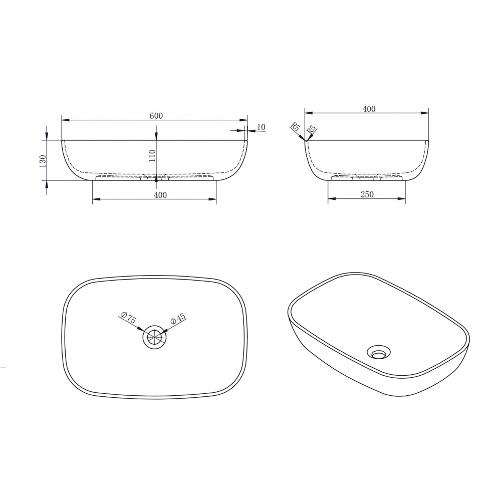 Abber Stein Раковина накладная прямоугольная 60x40x13h см, цвет: белый матовый AS2620 и другие сантехнические изделия бренда характеризует надежность, высокое качество и продолжительный срок службы. Изделие в стилистике минимализм впечатляюще будет смотреться в различных цветовых решениях помещения.