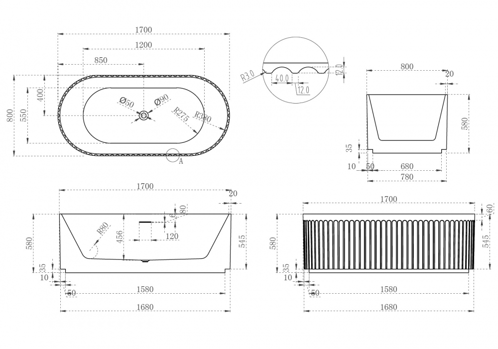 Abber Ванна акриловая отдельностоящая 170x80x58h см, цвет: белый AB9410-1.7 и другие сантехнические изделия бренда характеризует надежность, высокое качество и продолжительный срок службы. Изделие в стилистике лофт впечатляюще будет смотреться в различных цветовых решениях помещения.