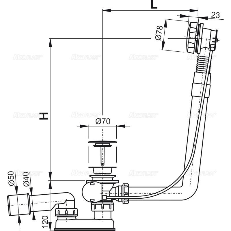 Alcaplast Сифон для ванны автомат комплект, металл, цвет: хром A550KM и другие сантехнические изделия бренда характеризует надежность, высокое качество и продолжительный срок службы. Изделие в стилистике минимализм впечатляюще будет смотреться в различных цветовых решениях помещения.