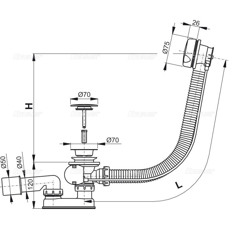 Alcaplast Сифон для ванны автомат комплект, пластик, цвет: белый A51BM и другие сантехнические изделия бренда характеризует надежность, высокое качество и продолжительный срок службы. Изделие в стилистике минимализм впечатляюще будет смотреться в различных цветовых решениях помещения.