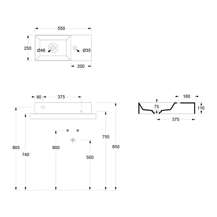 Alice Spy Раковина подвесная 55х25х11h см, без перелива, цвет: белый 34100101 и другие сантехнические изделия бренда характеризует надежность, высокое качество и продолжительный срок службы. Изделие в стилистике минимализм впечатляюще будет смотреться в различных цветовых решениях помещения.
