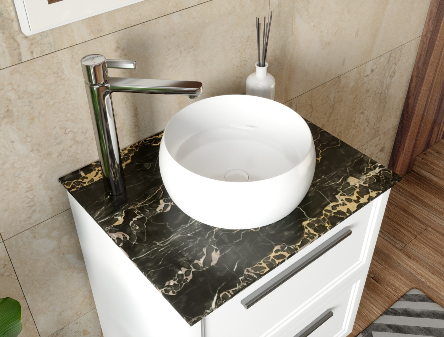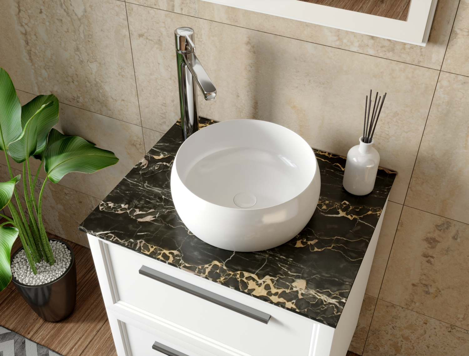 Раковина Allen Brau Liberty 4.32001.20 чем-то напоминает плавающую в озере кувшинку великолепного белоснежного цвета высотой 130 мм. Она сделана из высококачественной керамики с филигранными тонкими бортиками, особенно изящными на фоне объемной бочкообразой чаши круглой формы. Под накладную раковину диаметром 36 см легко подобрать столешницу, так как она очень компактная.
