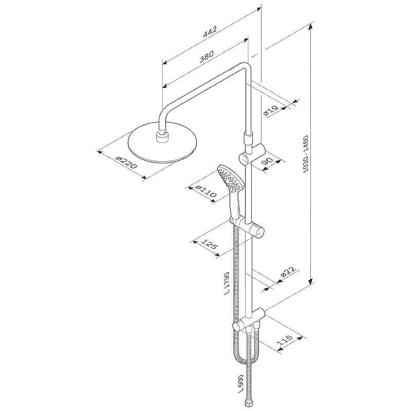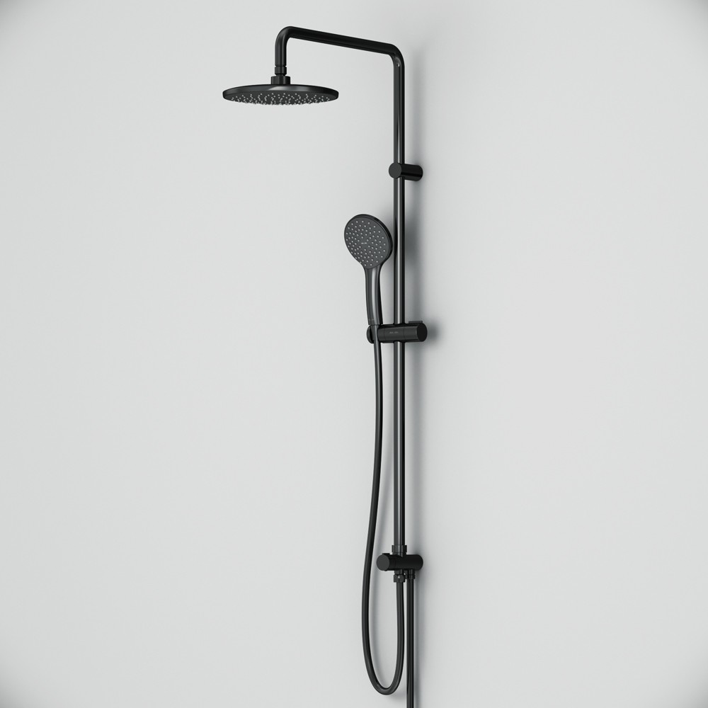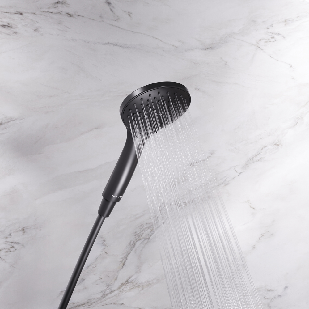 Am.Pm Gem Душевая стойка: верхний и ручной душ, шланг, без смесителя, цвет: черный матовый F0790022 и другие сантехнические изделия бренда характеризует надежность, высокое качество и продолжительный срок службы. Изделие в стилистике минимализм впечатляюще будет смотреться в различных цветовых решениях помещения.