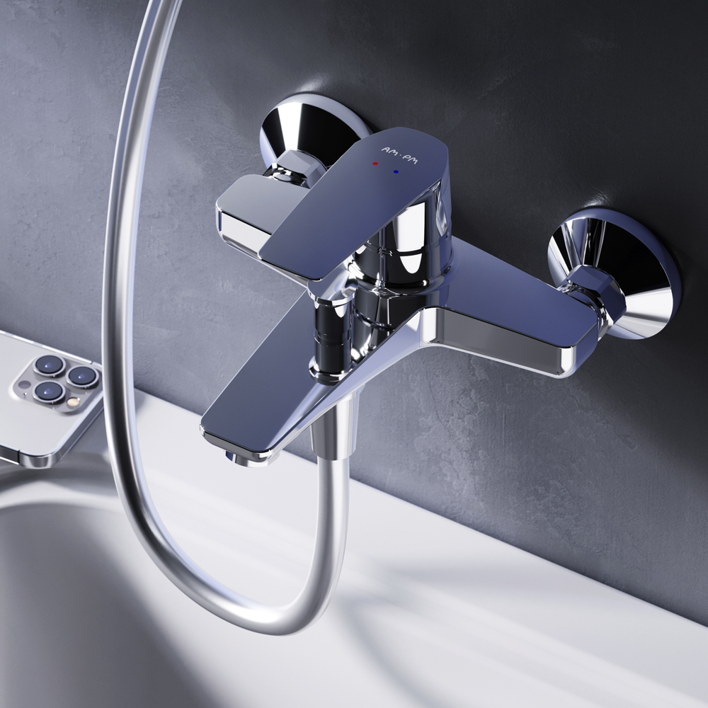 Am.Pm Gem Смеситель для ванны без душевого комплекта, излив 17,9 см, цвет: хром глянцевый F90A10000 и другие сантехнические изделия бренда характеризует надежность, высокое качество и продолжительный срок службы. Изделие в стилистике минимализм впечатляюще будет смотреться в различных цветовых решениях помещения.