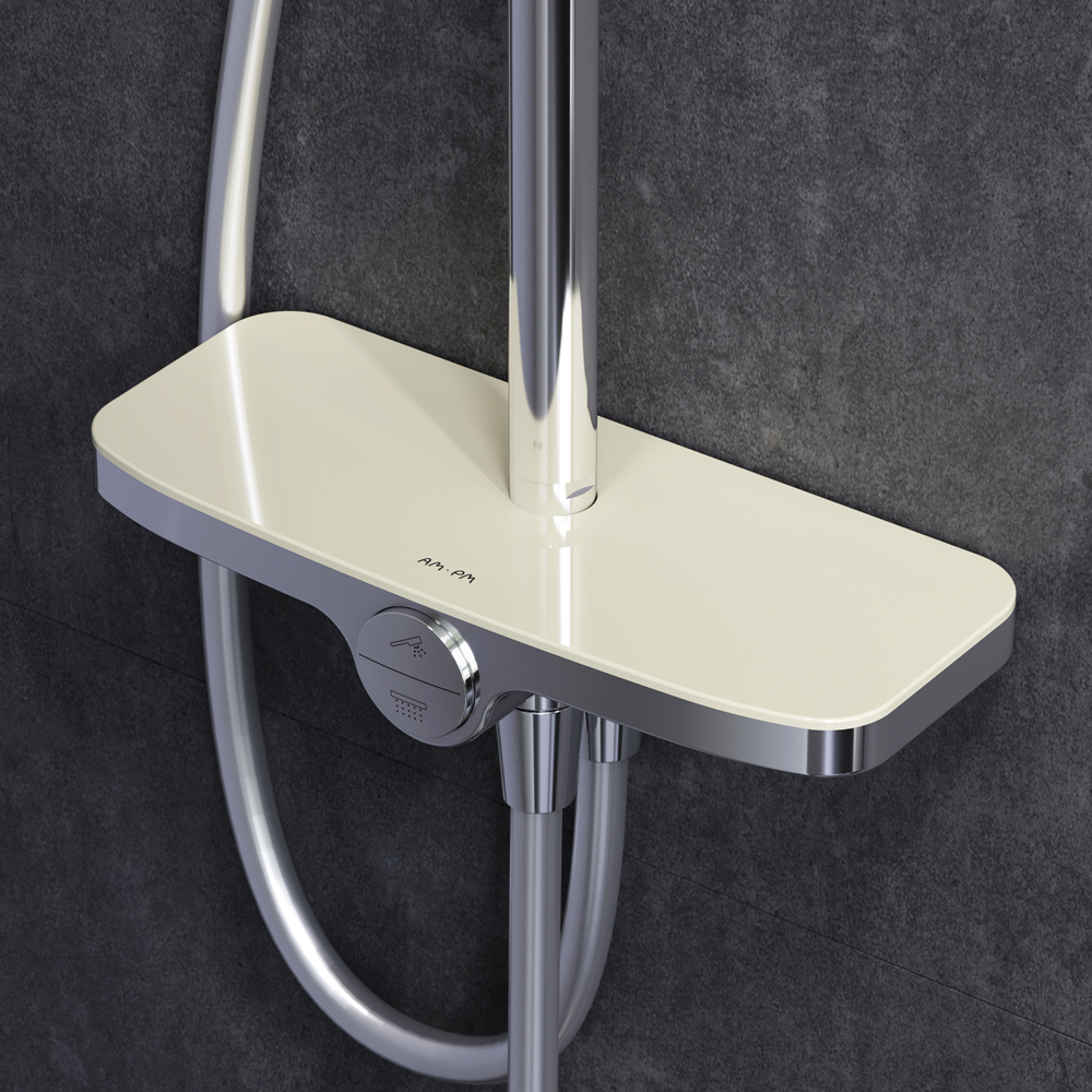 Am.Pm Like Душевая стойка: верхний и ручной душ, шланг, без смесителя, цвет: хром глянцевый F0780200 и другие сантехнические изделия бренда характеризует надежность, высокое качество и продолжительный срок службы. Изделие в стилистике неоклассика впечатляюще будет смотреться в различных цветовых решениях помещения.