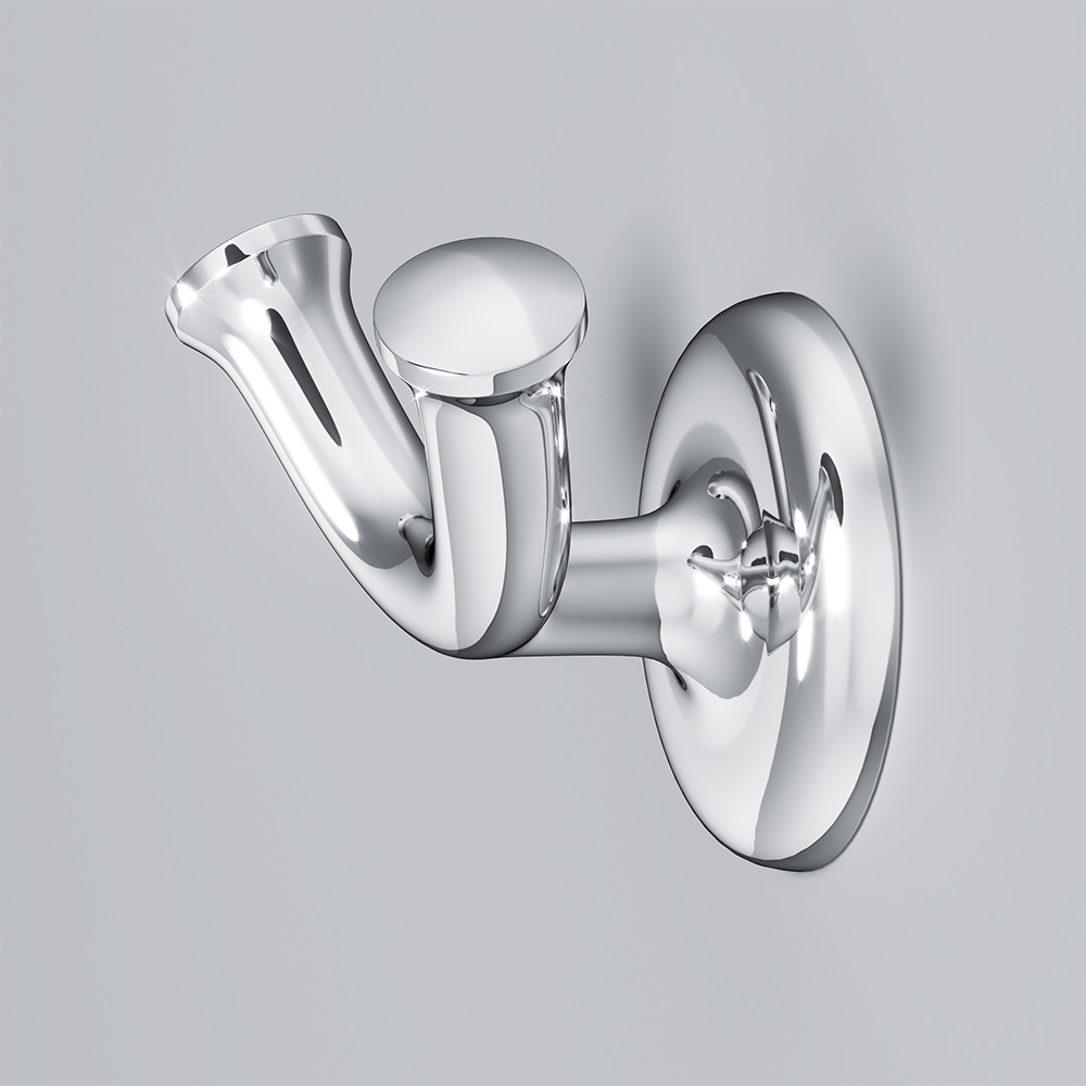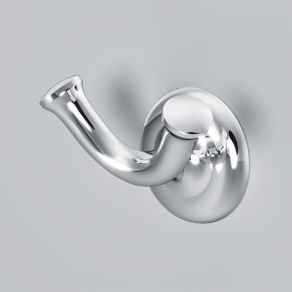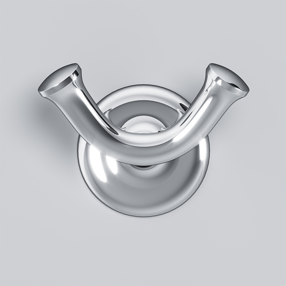 Am.Pm Like Двойной крючок для полотенец, цвет: хром A8035600 и другие сантехнические изделия бренда характеризует надежность, высокое качество и продолжительный срок службы. Изделие в стилистике неоклассика впечатляюще будет смотреться в различных цветовых решениях помещения.