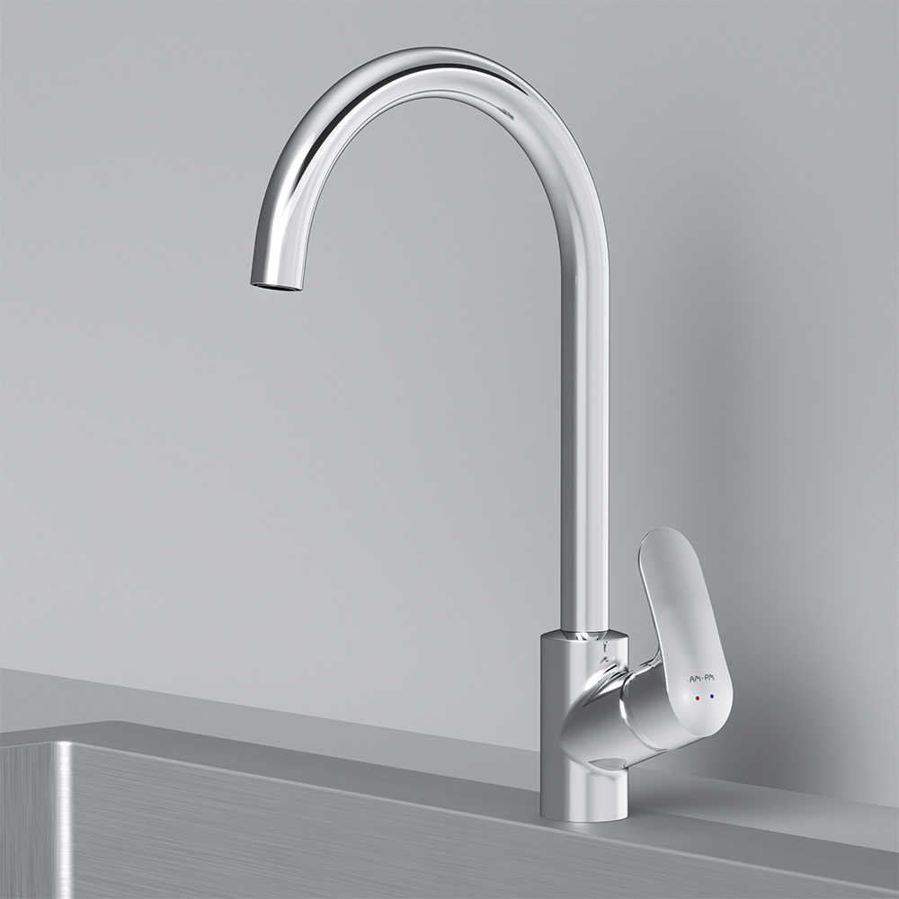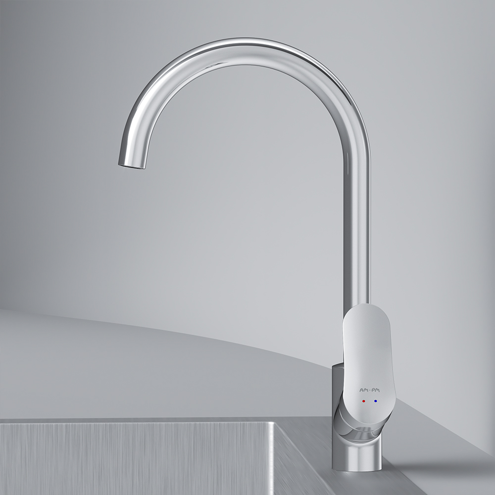 Am.Pm Like Смеситель для кухни, высота излива 27 см, цвет: хром глянцевый F8007100 и другие сантехнические изделия бренда характеризует надежность, высокое качество и продолжительный срок службы. Изделие в стилистике неоклассика впечатляюще будет смотреться в различных цветовых решениях помещения.