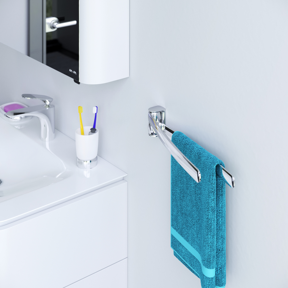 Am.Pm Sensation Двойной полотенцедержатель-вертушка 44 см, цвет: хром A3032600 и другие сантехнические изделия бренда характеризует надежность, высокое качество и продолжительный срок службы. Изделие в стилистике неоклассика впечатляюще будет смотреться в различных цветовых решениях помещения.