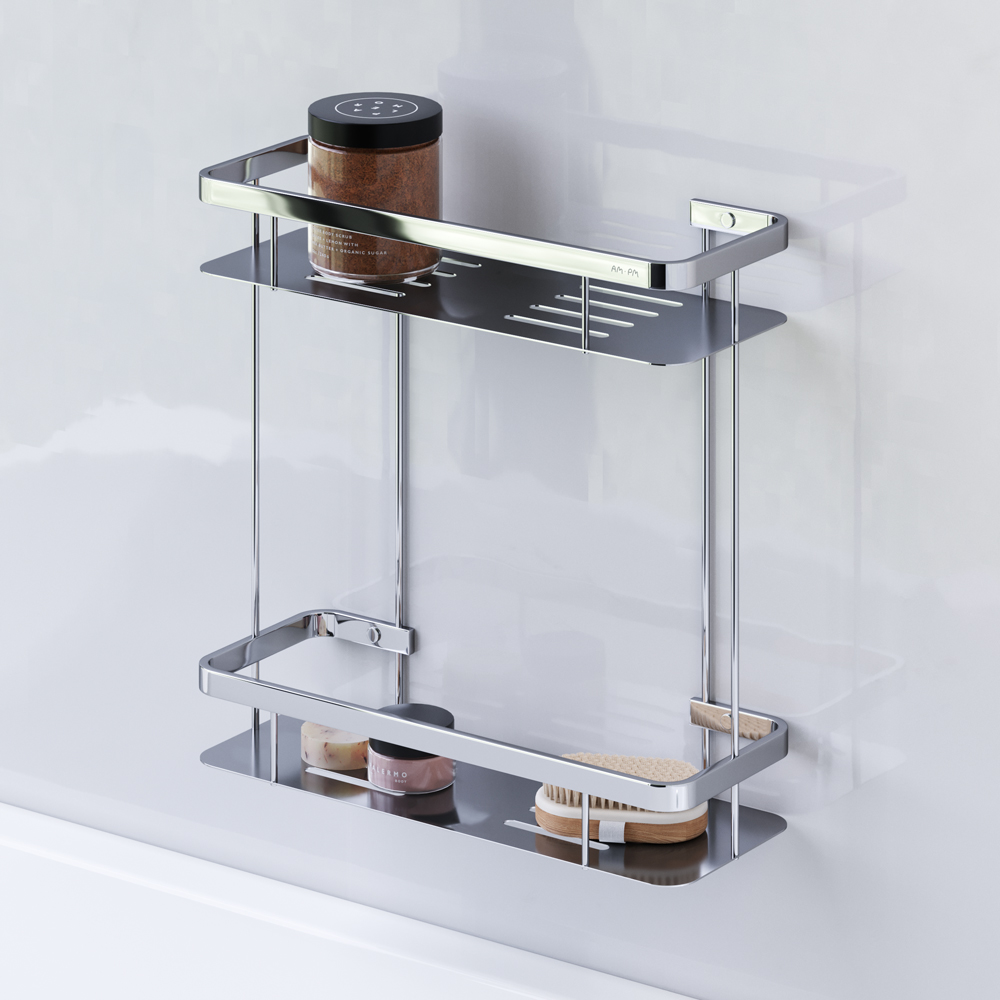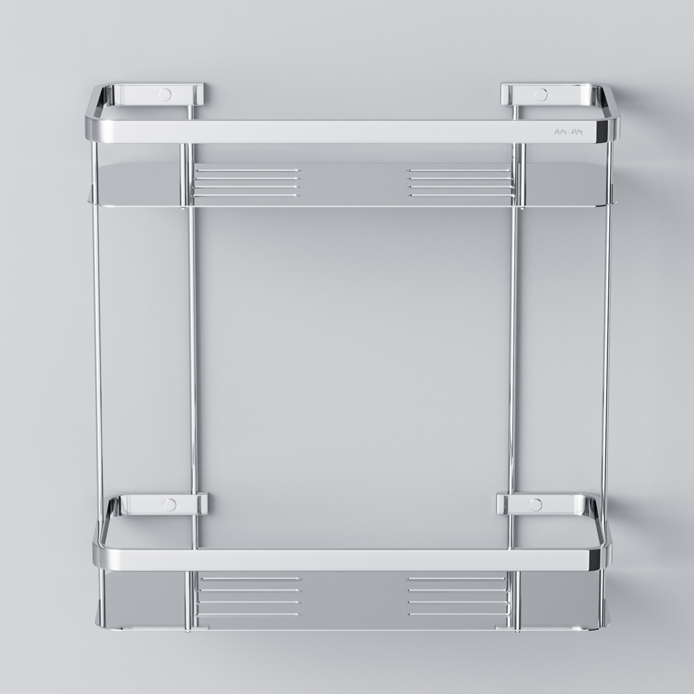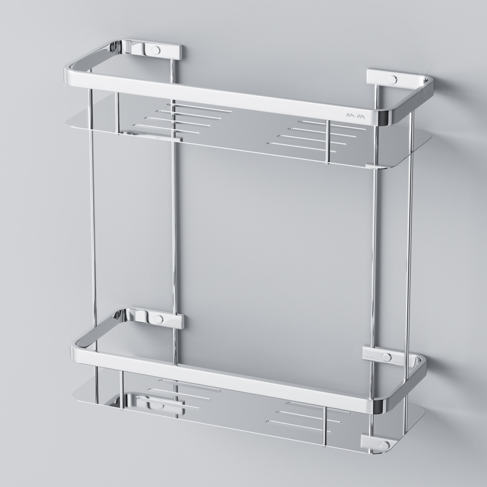 Am.Pm Sense L Полка подвесная 34,5 см, двухъярусная, цвет: хром глянцевый A7453200 и другие сантехнические изделия бренда характеризует надежность, высокое качество и продолжительный срок службы. Изделие в стилистике минимализм впечатляюще будет смотреться в различных цветовых решениях помещения.