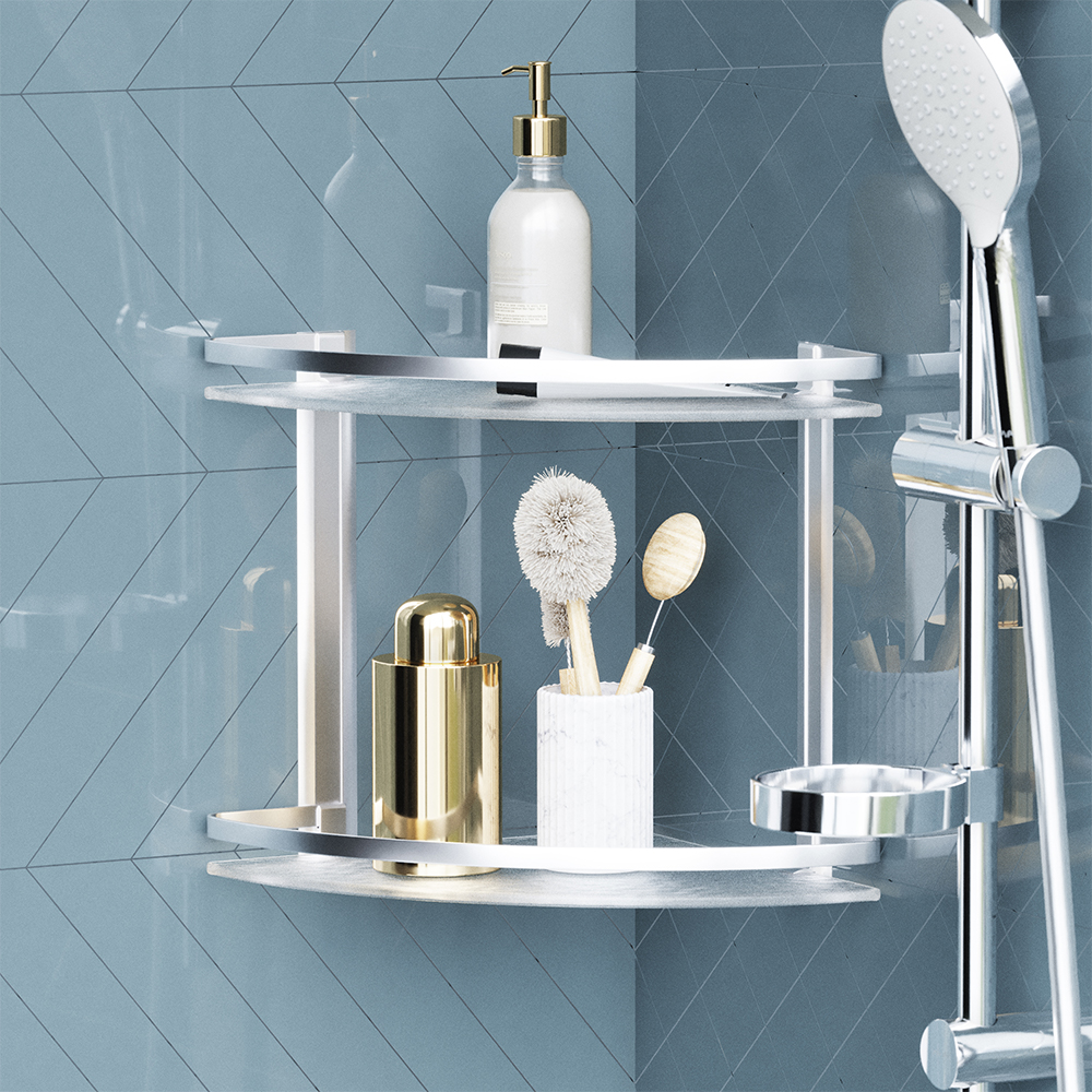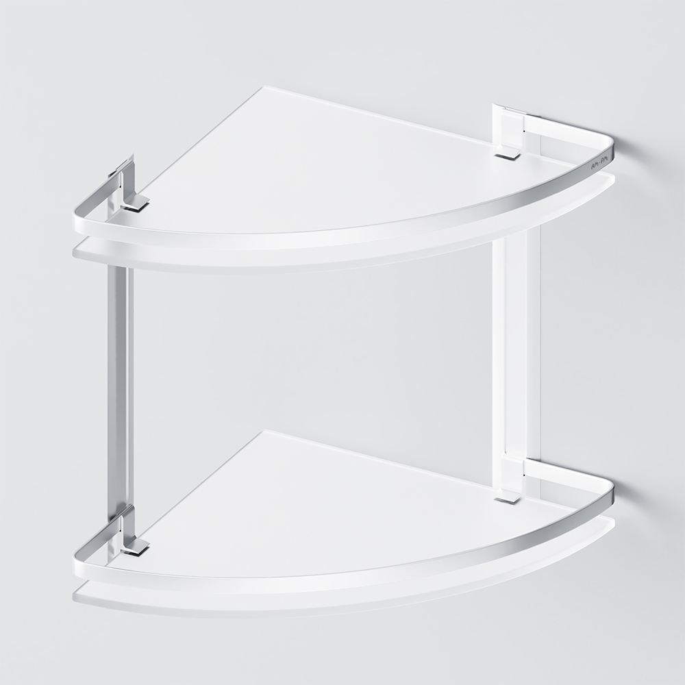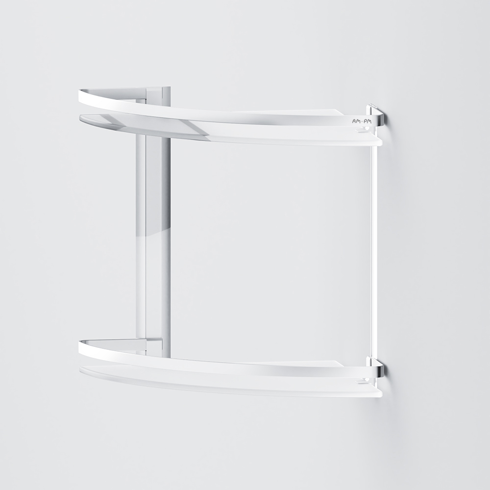 Am.Pm Sense L Полка подвесная 34 см, угловая двухъярусная, цвет: серебро матовое A7456200 и другие сантехнические изделия бренда характеризует надежность, высокое качество и продолжительный срок службы. Изделие в стилистике минимализм впечатляюще будет смотреться в различных цветовых решениях помещения.
