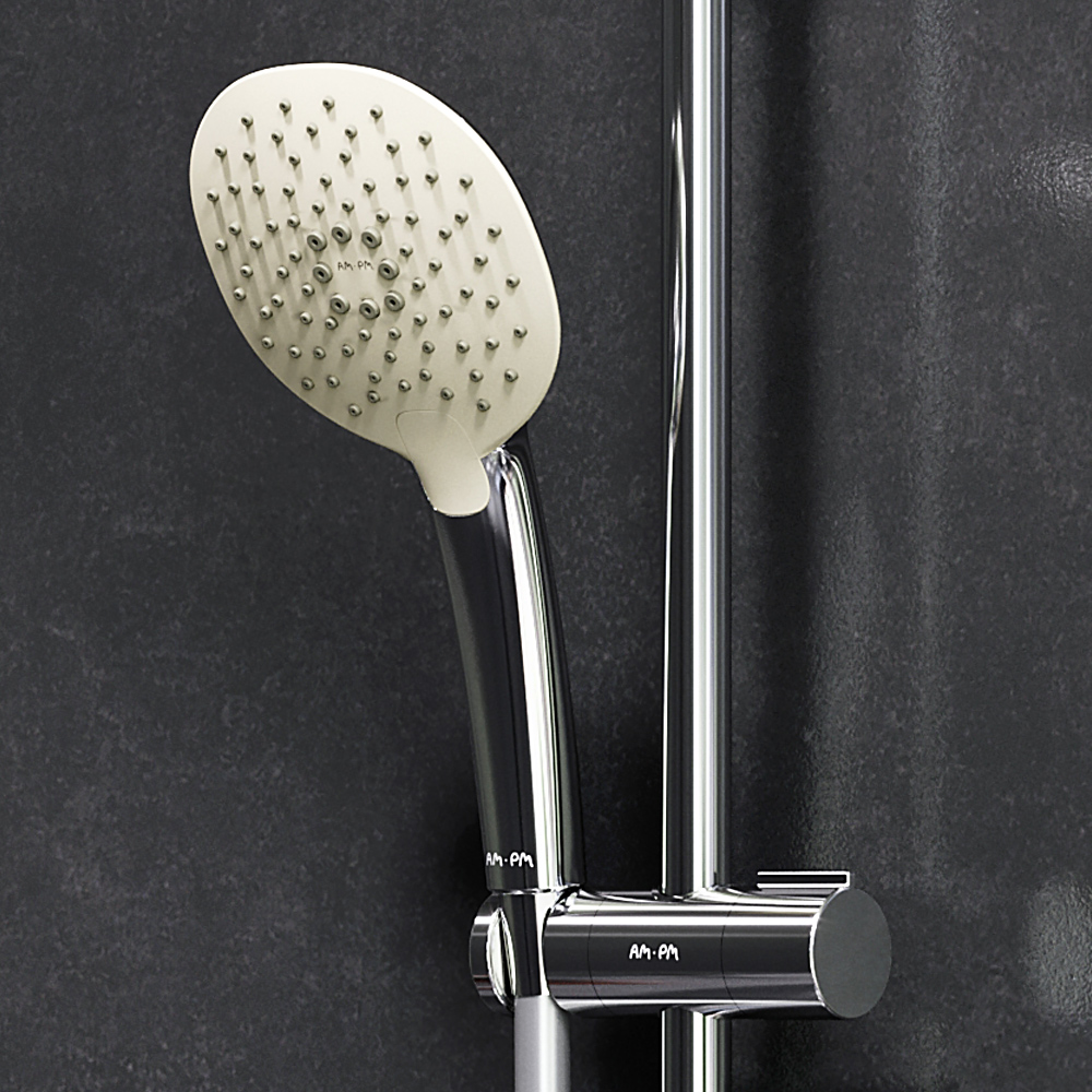 Am.Pm Spirit V2.0 Ручной душ из abs-пластика, 2 режима, цвет: хром глянцевый F0270A000 и другие сантехнические изделия бренда характеризует надежность, высокое качество и продолжительный срок службы. Изделие в стилистике минимализм впечатляюще будет смотреться в различных цветовых решениях помещения.