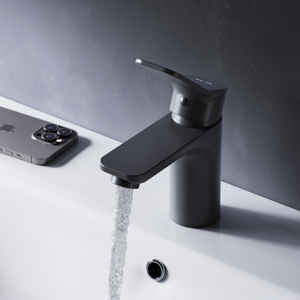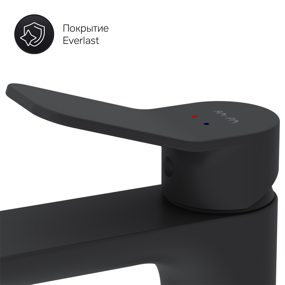 Am.Pm X-Joy Смеситель для раковины на 1 отверстие, без д/к, длина излива 10 см, цвет: черный матовый F85A02122 и другие сантехнические изделия бренда характеризует надежность, высокое качество и продолжительный срок службы. Изделие в стилистике неоклассика впечатляюще будет смотреться в различных цветовых решениях помещения.