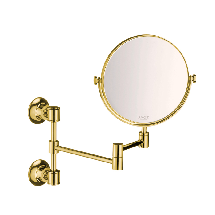 Axor Montreux Косметическое зеркало подвесное, поворотное, 1.7x увелич,, цвет: полированное золото 42090990 и другие сантехнические изделия бренда характеризует надежность, высокое качество и продолжительный срок службы. Изделие в стилистике неоклассика впечатляюще будет смотреться в различных цветовых решениях помещения.
