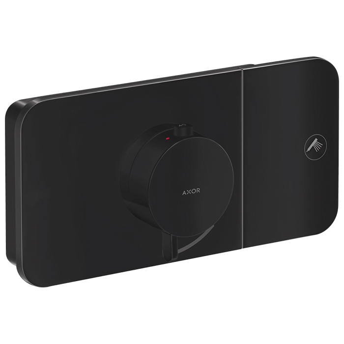 Axor One Термостат для душа встраиваемый, внешняя часть, цвет: матовый черный 45711670 и другие сантехнические изделия бренда характеризует надежность, высокое качество и продолжительный срок службы. Изделие в стилистике hi-tech впечатляюще будет смотреться в различных цветовых решениях помещения.