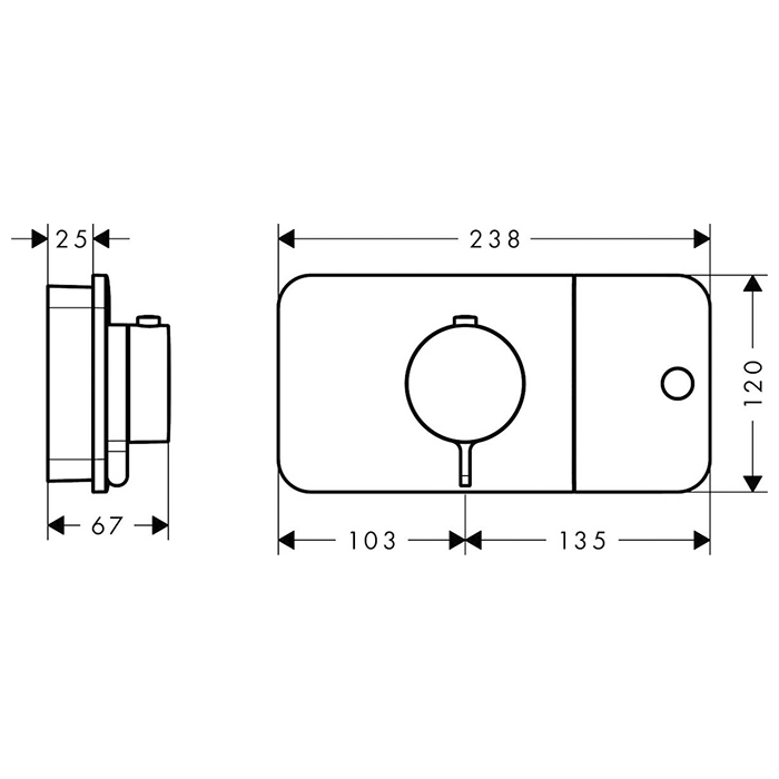 Axor One Термостат для душа встраиваемый - это ультрасовременное устройство от известной немецкой марки Axor. Он предназначен для регулирования температуры воды во время душа. Матово-черный цвет придает ему стильный и современный внешний вид, который будет отлично сочетаться с любым интерьером в ванной комнате. Термостат оборудован термостатическим картриджем, который обеспечивает стабильную температуру воды и защищает от обжигов. Установка производится на стену и также возможно сочетание с другими элементами из коллекции Axor One. Покупка включает внешнюю часть термостата, однако внутренний механизм (картридж) приобретается отдельно.
