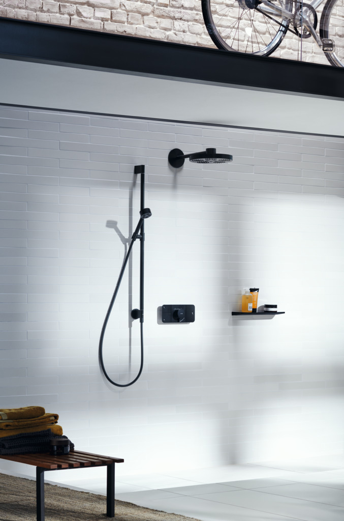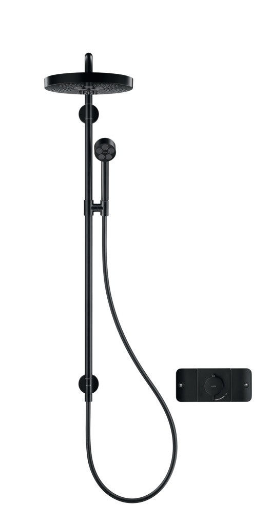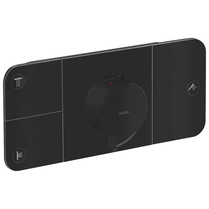 Axor One Термостат для душа встраиваемый на 3 потребителя, внешняя часть, цвет: матовый черный 45713670 и другие сантехнические изделия бренда характеризует надежность, высокое качество и продолжительный срок службы. Изделие в стилистике hi-tech впечатляюще будет смотреться в различных цветовых решениях помещения.