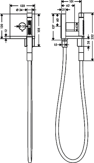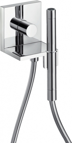 Axor Shower Collection Душевой гарнитур: лейка 2 режима, запорный клапан, внешняя часть, цвет: хром 10651000 и другие сантехнические изделия бренда характеризует надежность, высокое качество и продолжительный срок службы. Изделие в стилистике hi-tech впечатляюще будет смотреться в различных цветовых решениях помещения.