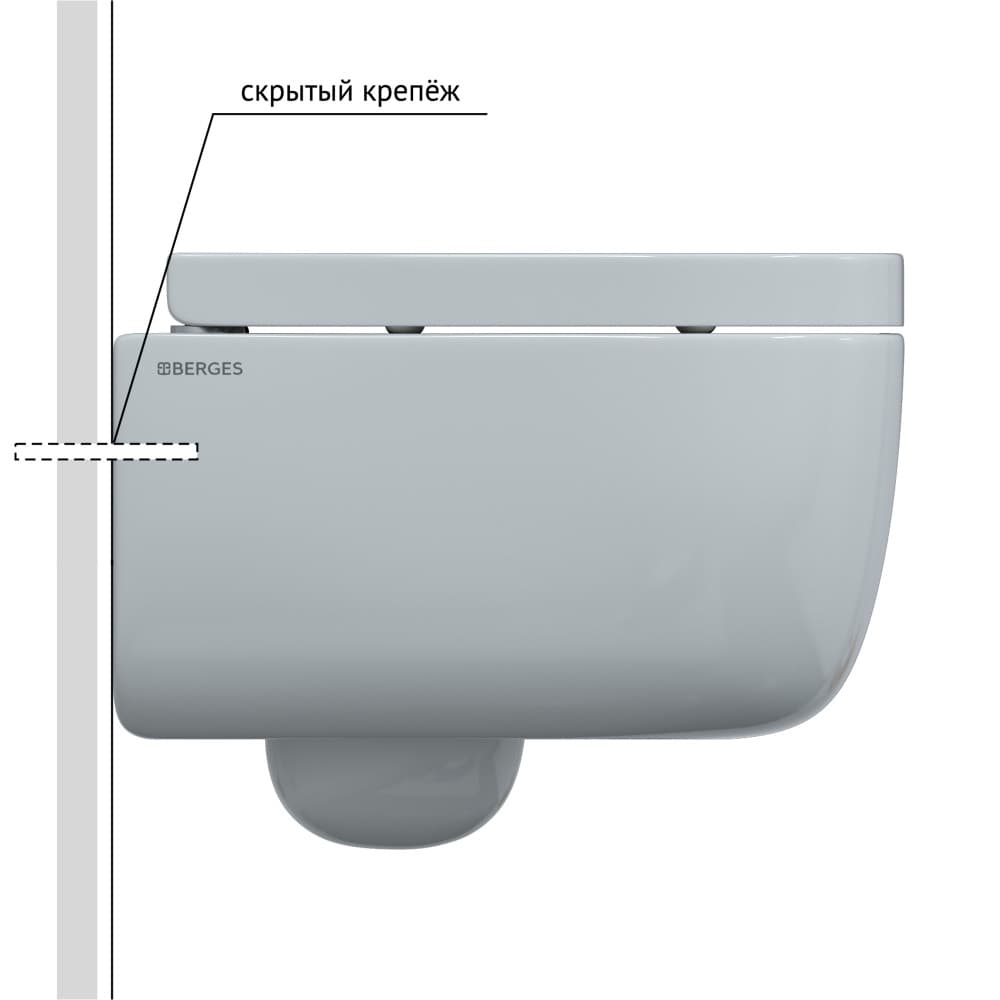 Berges Ego Подвесной унитаз Rimless 49х32,5h, с сиденьем, цвет: белый 082122 и другие сантехнические изделия бренда характеризует надежность, высокое качество и продолжительный срок службы. Изделие в стилистике минимализм впечатляюще будет смотреться в различных цветовых решениях помещения.