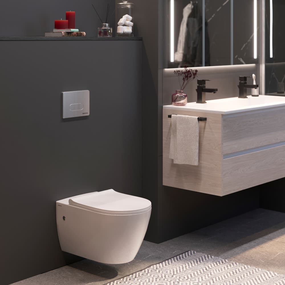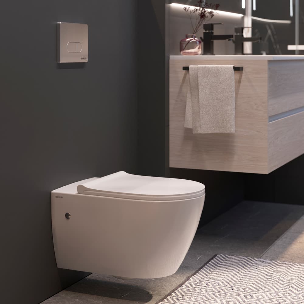 Berges Mascon Подвесной унитаз Rimless 57х37h, цвет белый 082128 и другие сантехнические изделия бренда характеризует надежность, высокое качество и продолжительный срок службы. Изделие в стилистике минимализм впечатляюще будет смотреться в различных цветовых решениях помещения.