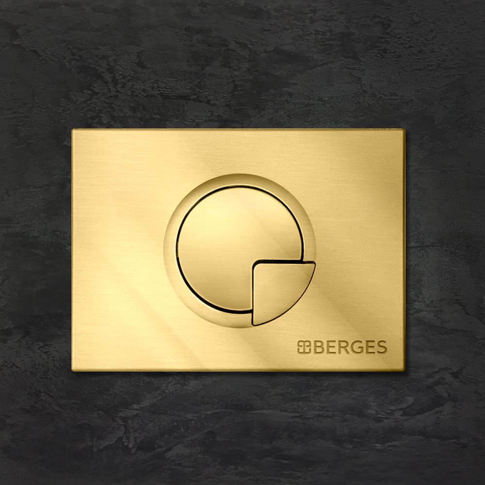 Berges Novum Панель смыва, цвет золото глянец 040029 и другие сантехнические изделия бренда характеризует надежность, высокое качество и продолжительный срок службы. Изделие в стилистике минимализм впечатляюще будет смотреться в различных цветовых решениях помещения.