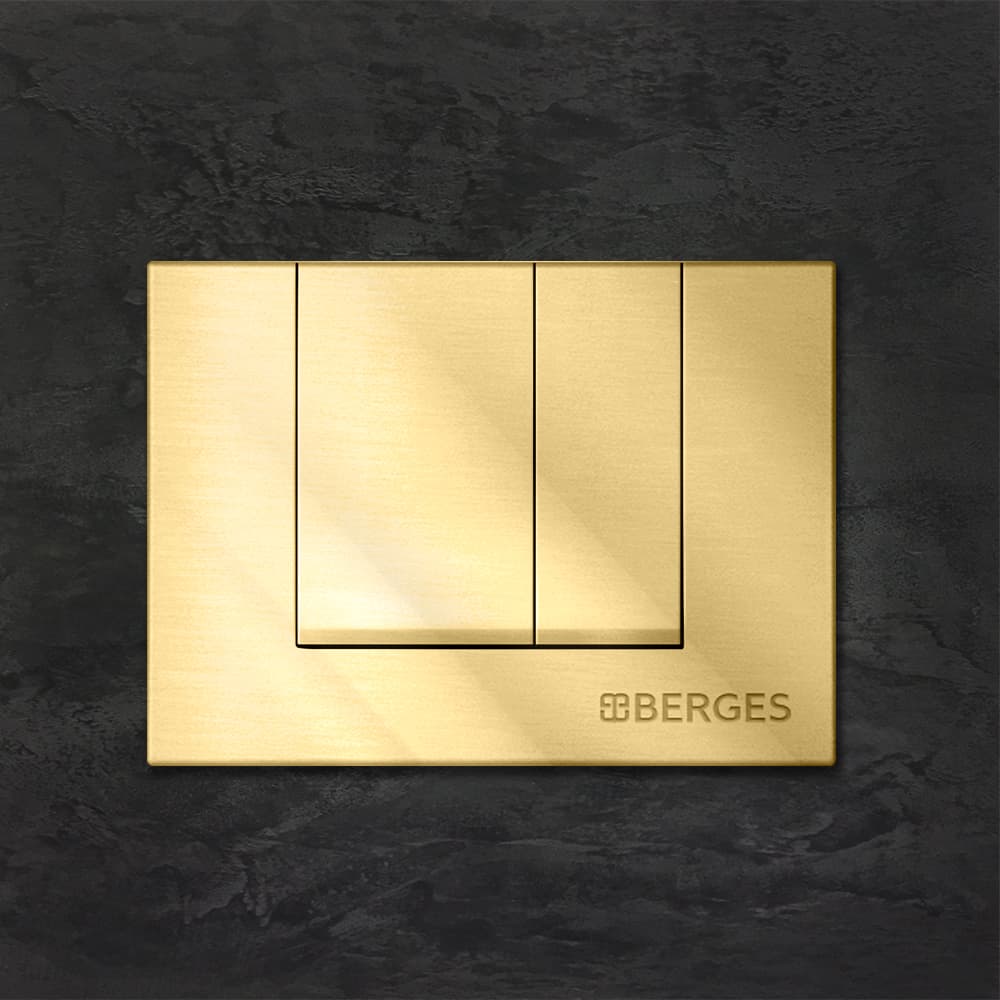 Berges Novum Панель смыва, цвет золото глянец 040049 и другие сантехнические изделия бренда характеризует надежность, высокое качество и продолжительный срок службы. Изделие в стилистике минимализм впечатляюще будет смотреться в различных цветовых решениях помещения.