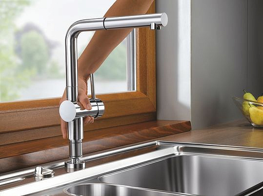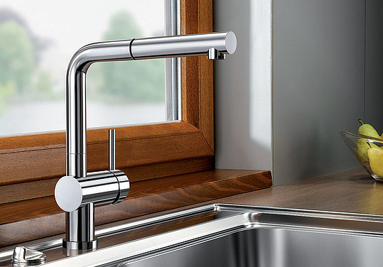 Blanco Linus-S Смеситель для кухни, выдв. излив, цвет: антрацит 512402 и другие сантехнические изделия бренда характеризует надежность, высокое качество и продолжительный срок службы. Изделие в стилистике лофт впечатляюще будет смотреться в различных цветовых решениях помещения.