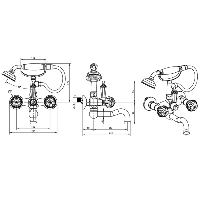 Boheme Brillante Presente Смеситель для ванны с душевым набором, излив 21,5 см, цвет: chrome 353 и другие сантехнические изделия бренда характеризует надежность, высокое качество и продолжительный срок службы. Изделие в стилистике прованс впечатляюще будет смотреться в различных цветовых решениях помещения.