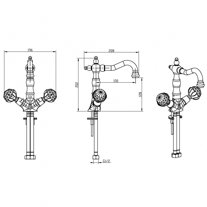 Закажите Boheme Imperiale Presente Смеситель для раковины без донного клап., длина излива 12,8 см, цвет: gold 332 от производителя Boheme, коллекция Imperiale Presente в салоне европейской сантехники Дизайн Сантехники с быстрой доставкой по Москве. Представлены подробные характеристики и фотографии, которые позволят сделать правильный выбор и заказать товар.