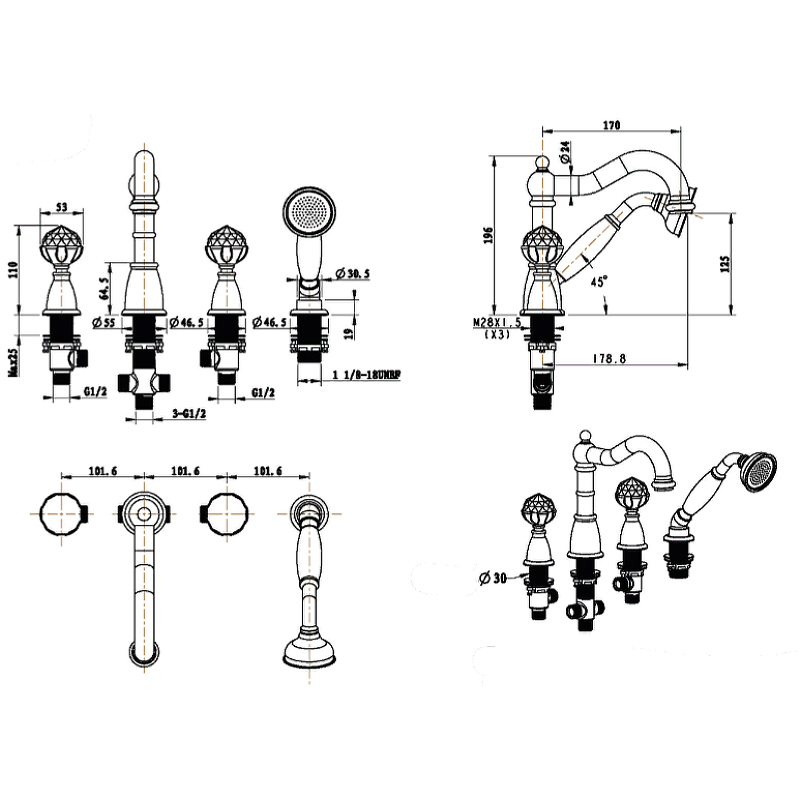 Закажите Boheme Provanse Spirale Смеситель на борт ванны, на 4 отверстия, с ручным душем, цвет: bronze 394 от производителя Boheme, коллекция Provanse в салоне европейской сантехники Дизайн Сантехники с быстрой доставкой по Москве. Представлены подробные характеристики и фотографии, которые позволят сделать правильный выбор и заказать товар.