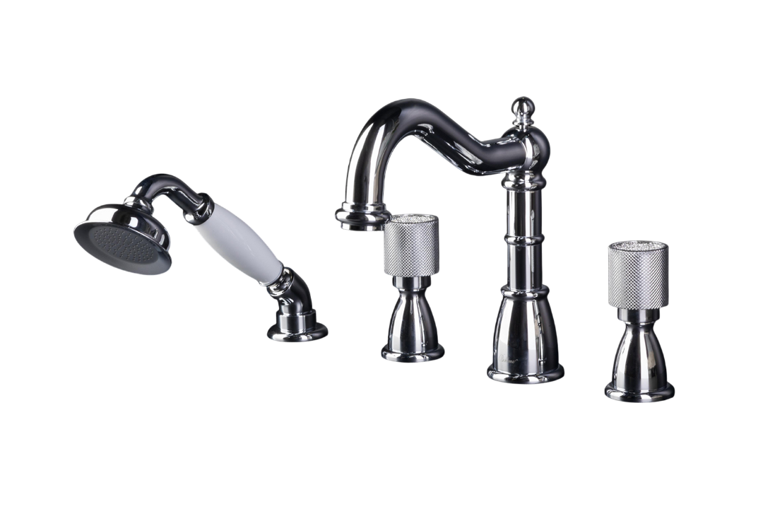 Boheme Royal Cristal Spirale Смеситель на борт ванны, на 4 отверстия, с ручным душем, цвет: chrome 396-Royal/CRST и другие сантехнические изделия бренда характеризует надежность, высокое качество и продолжительный срок службы. Изделие в стилистике неоклассика впечатляюще будет смотреться в различных цветовых решениях помещения.