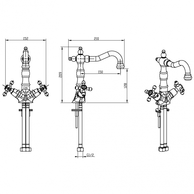 Boheme Satine Смеситель для раковины без дк, длина излива 15 см, цвет: chrome 272-ST и другие сантехнические изделия бренда характеризует надежность, высокое качество и продолжительный срок службы. Изделие в стилистике английская классика впечатляюще будет смотреться в различных цветовых решениях помещения.