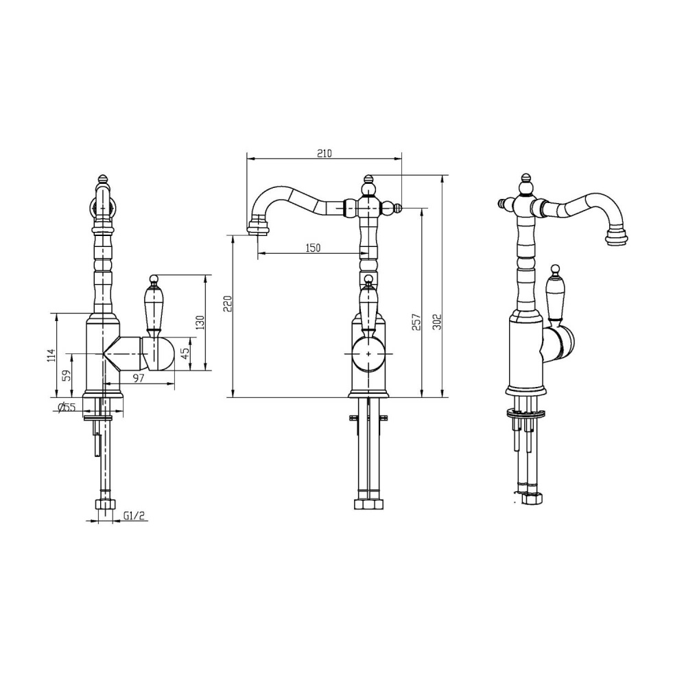 Boheme Tradizionale Nero Смеситель для раковины высота излива 22 см, без д/к, цвет: chrome 242 и другие сантехнические изделия бренда характеризует надежность, высокое качество и продолжительный срок службы. Изделие в стилистике прованс впечатляюще будет смотреться в различных цветовых решениях помещения.