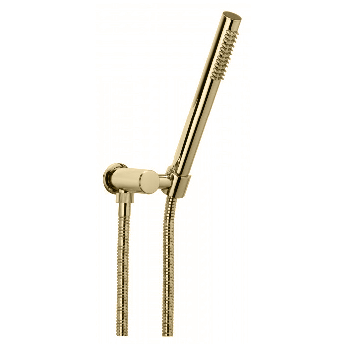 Bongio Душевой гарнитур: вывод с держателем, шланг, ручная лейка, цвет: золото 00830OR00 и другие сантехнические изделия бренда характеризует надежность, высокое качество и продолжительный срок службы. Изделие в стилистике неоклассика впечатляюще будет смотреться в различных цветовых решениях помещения.