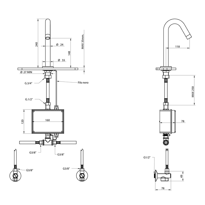 Bongio Elettronici Сенсорный смеситель для раковины, цвет черный матовый 30501NEEL и другие сантехнические изделия бренда характеризует надежность, высокое качество и продолжительный срок службы. Изделие в стилистике лофт впечатляюще будет смотреться в различных цветовых решениях помещения.