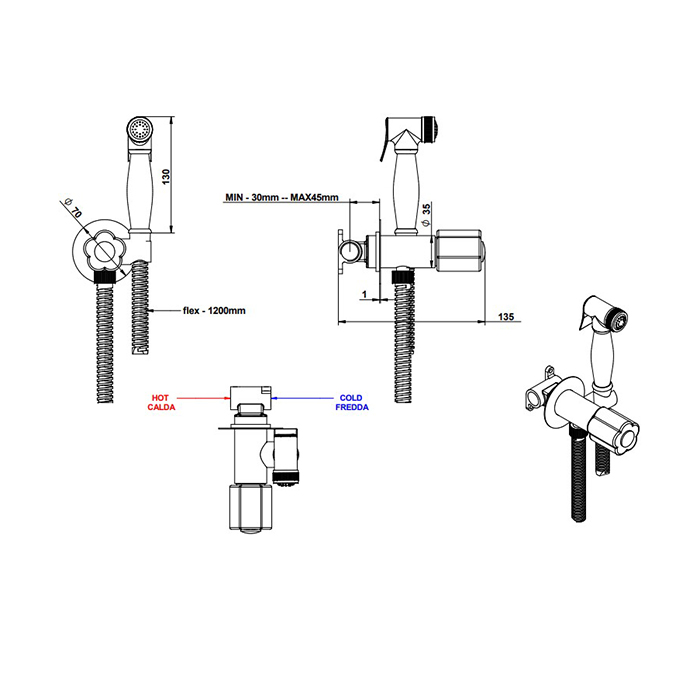 Bongio Fleur Blanc Гигиенический душ, цвет хром/белый фрафор 11916CR00 и другие сантехнические изделия бренда характеризует надежность, высокое качество и продолжительный срок службы. Изделие в стилистике лофт впечатляюще будет смотреться в различных цветовых решениях помещения.