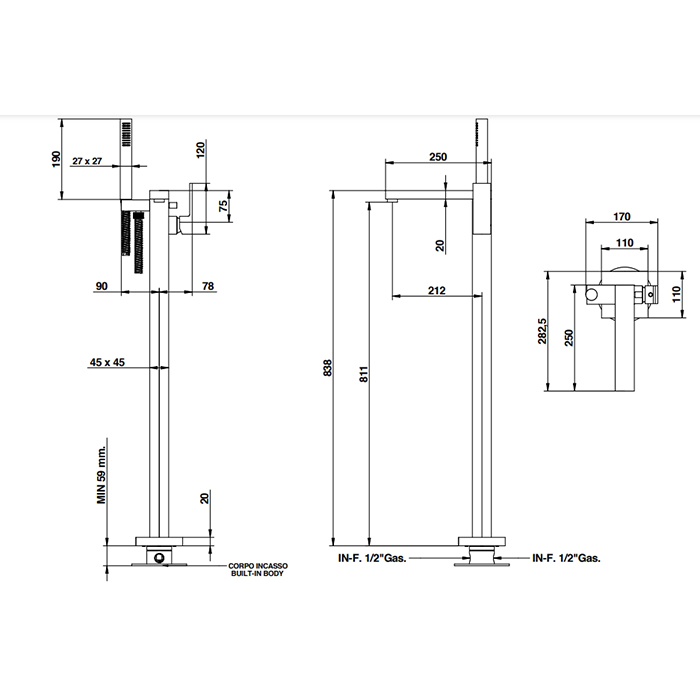 Bongio Line Смеситель для ванны с душем напольный, излив 21,2 см, цвет: хром 67534CR0DPREU и другие сантехнические изделия бренда характеризует надежность, высокое качество и продолжительный срок службы. Изделие в стилистике минимализм впечатляюще будет смотреться в различных цветовых решениях помещения.