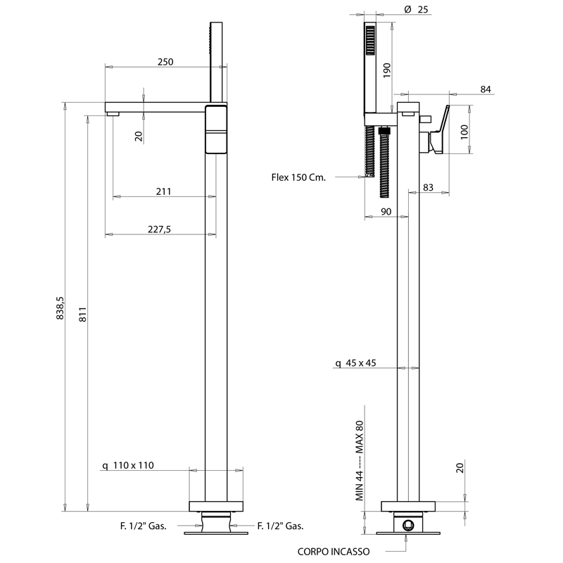 Bongio Reef Смеситель для ванны, напольный, цвет: хром 53534CR0DPR и другие сантехнические изделия бренда характеризует надежность, высокое качество и продолжительный срок службы. Изделие в стилистике арт-деко впечатляюще будет смотреться в различных цветовых решениях помещения.