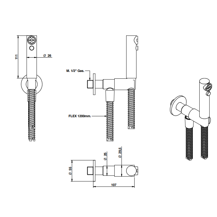 Bongio Set Doccia Гигиенический душ, цвет черный матовый 00904NE00 и другие сантехнические изделия бренда характеризует надежность, высокое качество и продолжительный срок службы. Изделие в стилистике неоклассика впечатляюще будет смотреться в различных цветовых решениях помещения.