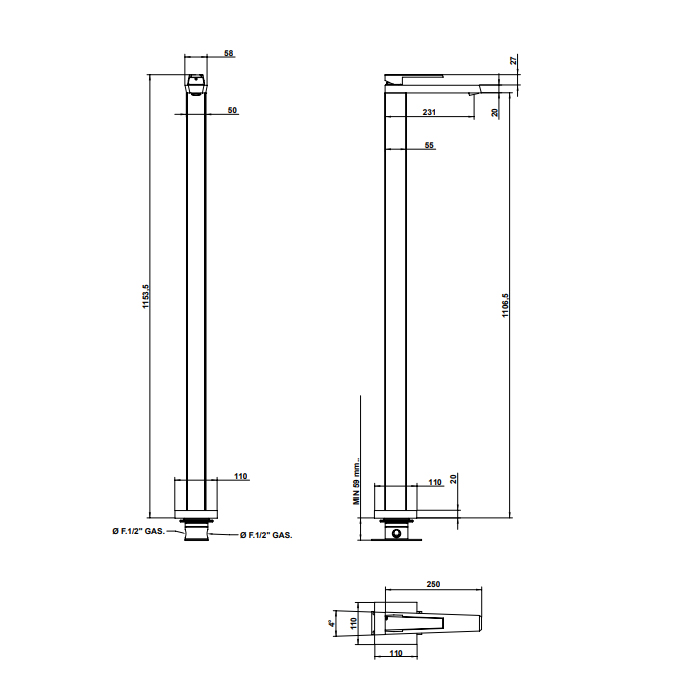 Bongio Stelth Смеситель для раковины, напольный, цвет: хром 01533CR00 и другие сантехнические изделия бренда характеризует надежность, высокое качество и продолжительный срок службы. Изделие в стилистике минимализм впечатляюще будет смотреться в различных цветовых решениях помещения.