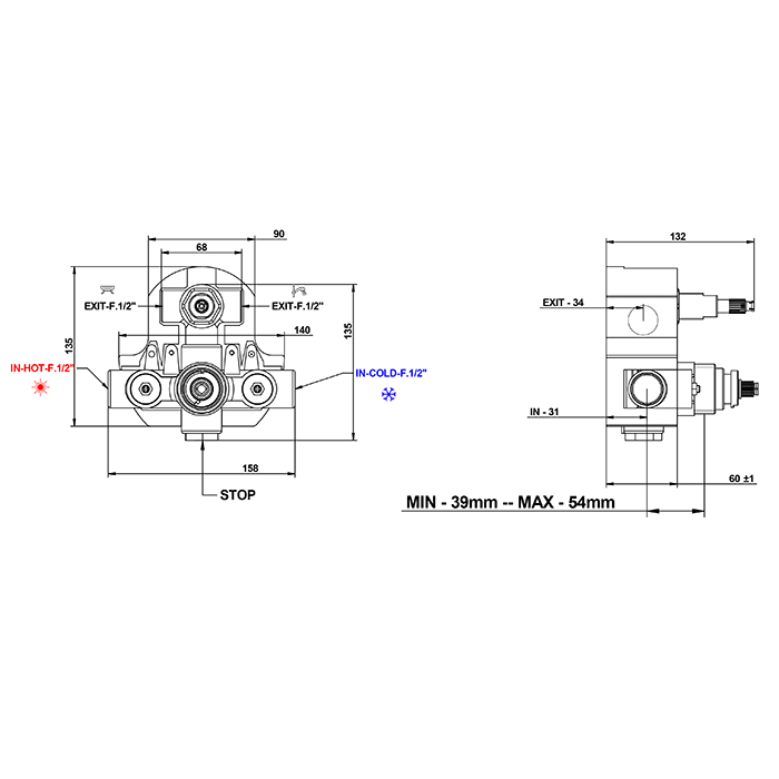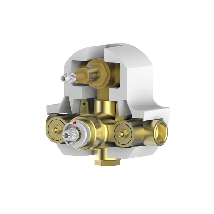 Bongio Внутренняя часть термостатического смесителя на 2 источника 097280000 и другие сантехнические изделия бренда характеризует надежность, высокое качество и продолжительный срок службы. Изделие в стилистике неоклассика впечатляюще будет смотреться в различных цветовых решениях помещения.