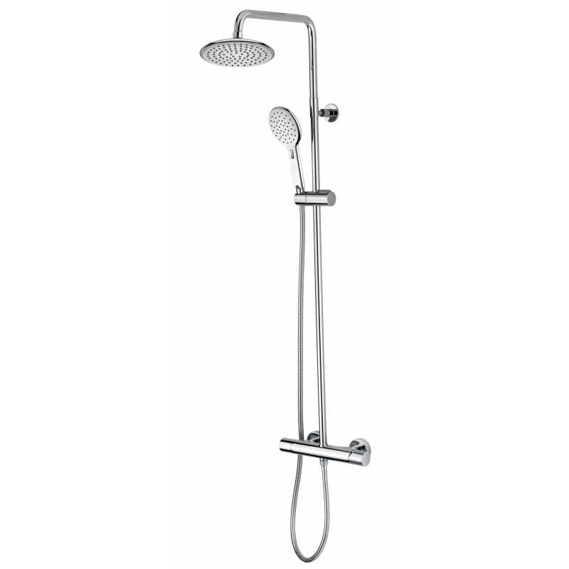 Bossini Agua Душевая стойка: смеситель, ручной и верхний душ, 1 вид струи, шланг, цвет: chrome L10022.030 и другие сантехнические изделия бренда характеризует надежность, высокое качество и продолжительный срок службы. Изделие в стилистике минимализм впечатляюще будет смотреться в различных цветовых решениях помещения.