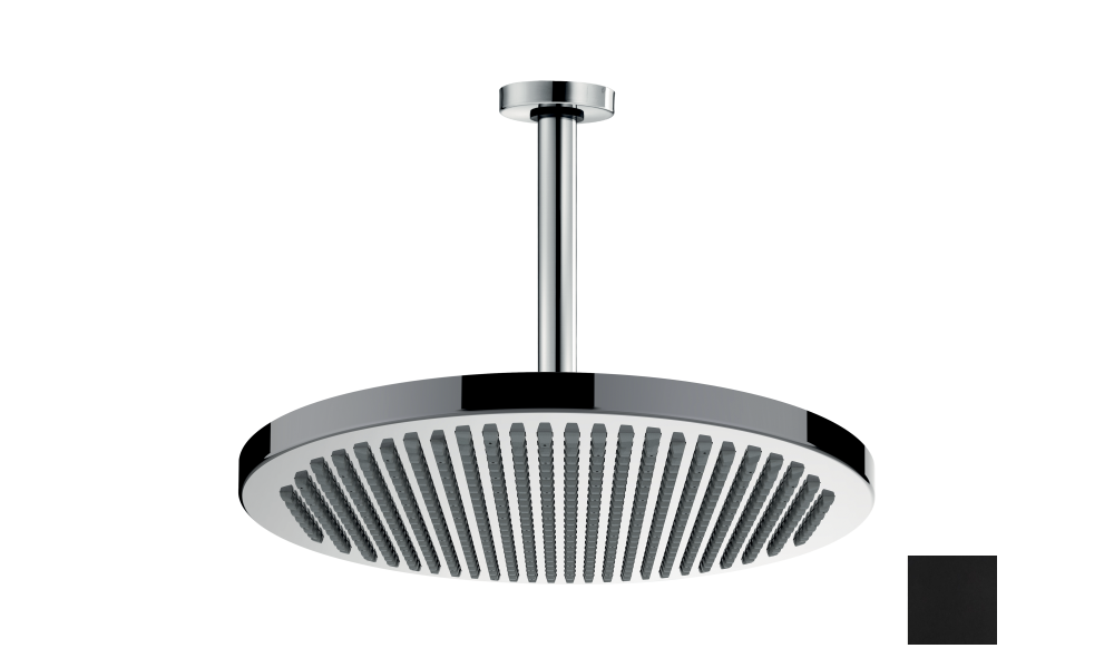 Bossini Apice Верхний душ d28 см, 1 вид струи, кронштейн потолочный 30 см, цвет: mat black H31430G.073 и другие сантехнические изделия бренда характеризует надежность, высокое качество и продолжительный срок службы. Изделие в стилистике неоклассика впечатляюще будет смотреться в различных цветовых решениях помещения.